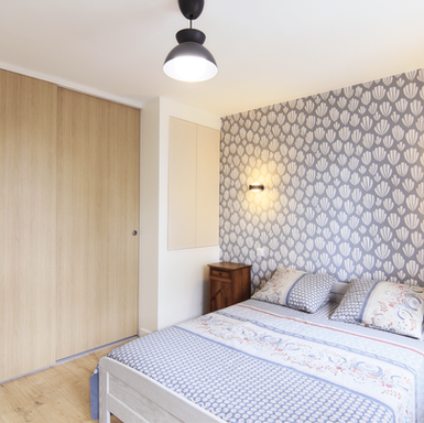 Pour redonner leur fonctionnalité aux espaces, nous avons conçu des placards sur mesure dont les façades s'harmonisent avec le bois clair du revêtement de sol.
